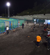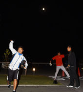 오키나와 달 빛 아래 셰도우 피칭하는 한화 투수들