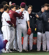 2014.11.07 19: 42더그아웃 들어가는 오재영,'4회 큰일날뻔 했어'