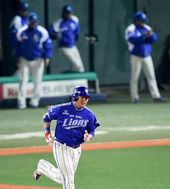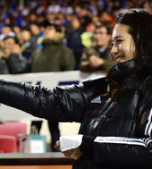 2014.11.07 22: 22이승엽 아내 이송정,'덕아웃으로들어가는 남편에게 건네는 손인사'