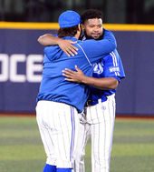 2014.11.07 18: 15나바로-박석민,'3차전 승리 다짐하는 포옹'