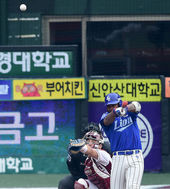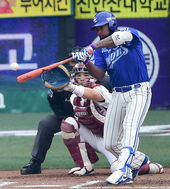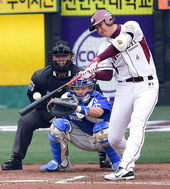 한국시리즈서 불 뿜는 유한준,'이번엔 솔로포다!'