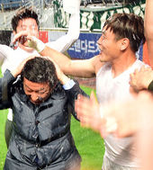 2014.11.08 18: 27우승 거둔 최강희 감독,'우승 물 세례로 좋다'