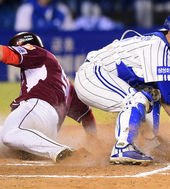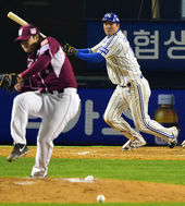 2014.11.10 21: 11조상우 옆을 스쳐지나가는 채태인의 중전안타