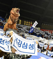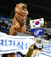 2014.11.10 20: 39사자의 등장과 함께 열띤 응원 펼치는 삼성 팬들