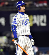 2014.11.10 20: 40김민성,'자신의 타구에 헬멧 강타'(한국시리즈 5차전)