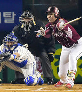 2014.11.10 18: 55한국시리즈 5차전 첫 안타 날리는 최형우,'타격감 좋아'