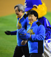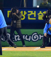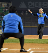 2014.11.10 18: 31한국시리즈 5차전 시구 어우홍-포구 김재박