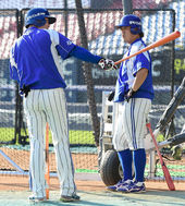 2014.11.10 16: 12이승엽-김상수,'오늘은 저 멀리 넘겨야해~'