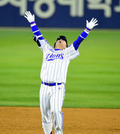 2014.11.10 21: 49최형우의 역전 끝내기 안타에 환호하는 이승엽