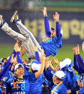 2014.11.11 22: 37삼성라이온즈 통합 4연패,'헹가레 받는 류중일 감독,'내가 삼성 감독이다!'