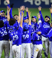 2014.11.11 22: 20환호하는 삼성,'언제나 짜릿한 한국시리즈 우승!'