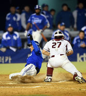 2014.11.11 21: 15이승엽,'모래 폭풍을 일으키며 홈 세이프!'