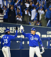 2014.11.11 19: 41환호하는 사자군단,'사상 첫 통합 4연패가 가까이'