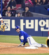 2014.11.11 19: 19김상수의 번트를 놓치는 오재영