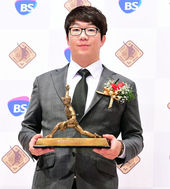 2014.11.11 15: 24양현종,'우상 최동원 선배가 그려진 트로피 들고'