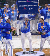 2014.11.12 07: 03삼성 통합 4연패 달성,'샴페인도 뿌려본 사람이 잘뿌려!'