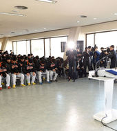 2014.11.13 11: 45선수들과 인사하는 롯데 이창원 대표이사