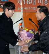 2014.11.13 11: 51아들에게 꽃다발 받는 이종운 감독
