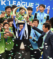 2014.11.15 21: 48우승 트로피 들어올리는 현대 김충호 사장