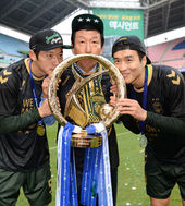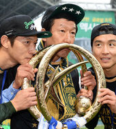 2014.11.15 17: 04김남일-최강희 감독-이동국,'우승 트로피에 짜릿한 키스'