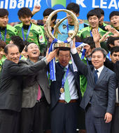 2014.11.15 17: 18우승 트로피 번쩍 들어 올리는 최강희 감독