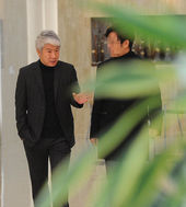 2014.11.16 16: 05침통한 표정으로 아내 故김자옥 빈소에 들어서는 오승근