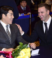 2014.11.18 14: 05벤덴헐크-강정호,'한해를 빛낸 선수들의 미소'