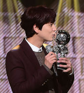 2014.11.20 19: 48규현,'1위기념 트로피 키스'