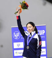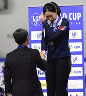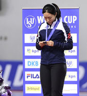 2014.11.21 18: 26'어색한 은메달 수상하는 빙속여제 이상화'