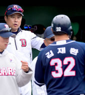2014.11.21 16: 39솔로포 날린 김재환 격려하는 두산 김태형 감독