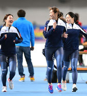 2014.11.23 15: 36박승희-장미-이상화,'팀연습은 즐거워'