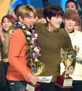 2014.11.26 20: 10강인-규현,'사이좋게 트로피 받았어요'