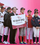 2014.11.29 16: 25야구 꿈나무들에게 장학금 전달하는 LG 백순길 단장