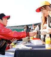 2014.11.29 14: 42오지환,'여성팬과 다정한 악수'