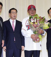 2014.11.30 14: 50타이거즈 8대 감독 김기태,'포토타임은 어색해~'