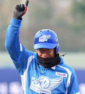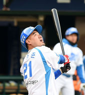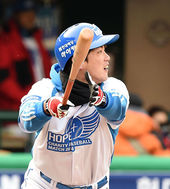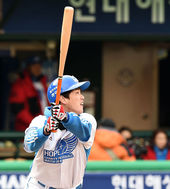 2014.12.07 14: 19양준혁,'이여상 만세 타법에 환한 미소'