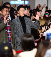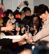 2014.12.08 19: 20김우빈,팬들의 뜨거운 환호에 '싱글벙글'