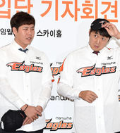 2014.12.11 13: 48권혁-배영수,'독수리 유니폼 아직은 어색해'