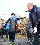 2014.12.12 14: 29지게 지고 봉사활동 나선 A대표팀 슈틸리케 감독