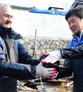 봉사활동 나선 슈틸리케-정몽규,'따뜻함을 전합니다'