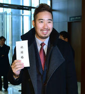 2014.12.13 12: 17홍성흔,'아들 손 꼭 잡고'