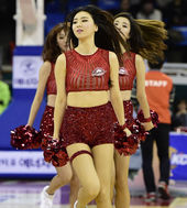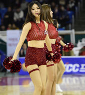 2014.12.14 14: 58치어리더,'코트를 더 뜨겁게 상큼 댄스'