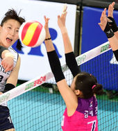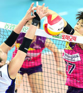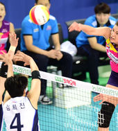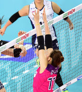 2014.12.17 18: 03김혜진,'블로킹을 뚫고 득점'