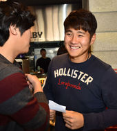 2014.12.20 16: 14김선빈,'상큼 미소 날리며 두산 팬과 다정한 셀카'