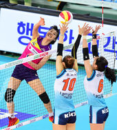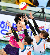 2014.12.23 18: 29흥국생명 이재영 공격 막아내는 GS칼텍스