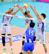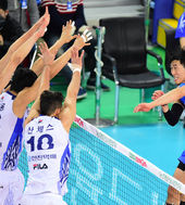 2014.12.23 20: 26블로킹하는 대한항공 산체스,'손목으로 팡'