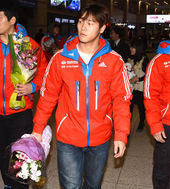 2014.12.24 19: 04환한 미소로 입국하는 스켈레톤 윤성빈