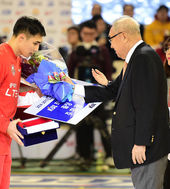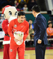 2014.12.25 16: 00김영기 KBL 총재, '주희정, 900경기 출장 기록 시상'