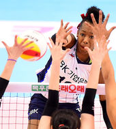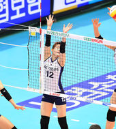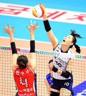 IBK 박정아,'블로킹을 살짝 피해'