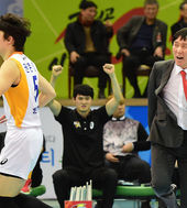2014.12.27 16: 26기뻐하는 신영철 감독, '대한항공 잡아보자'